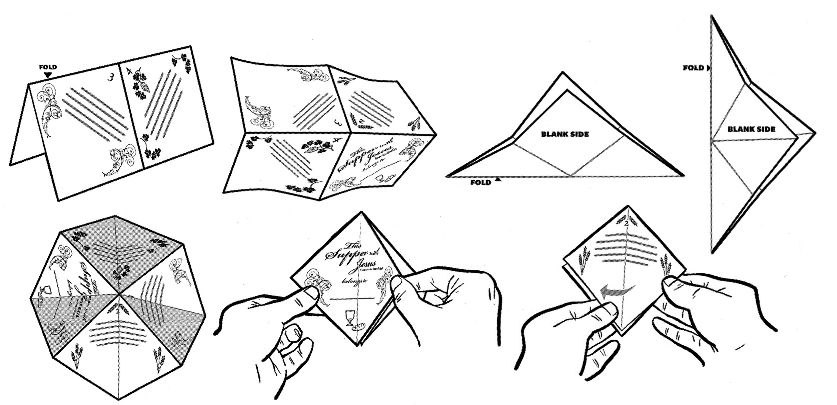向孩子展示你课前准备好的纪念册样本,并说明:在折之前先写或画内容会比较容易。所以他们要先完成内容,然后再来动手折叠。告诉他们会两人一组,一起阅读每页的经文和问题并讨论。