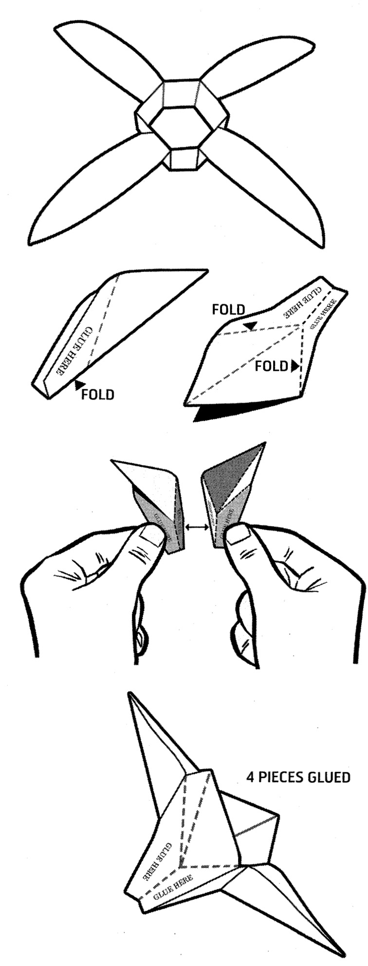 ✔ 按指示把两个花瓣底部粘合在一起,另一组花瓣也同样处理。
